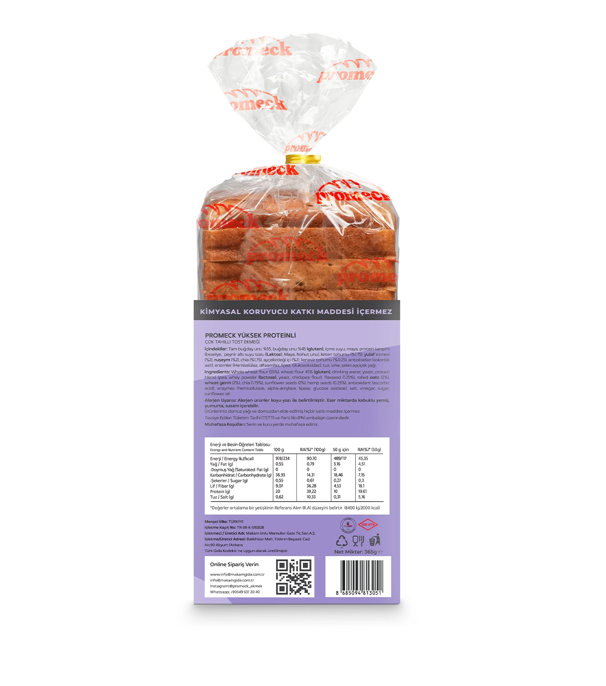 Doğa her tahıla farklı bir besin değeri ve aroma kazandırır. Promeck Çok Tahıllı Yüksek Proteinli Tost Ekmeği, farklı tahılların besleyici özelliklerini tek bir ekmekte bir araya getirir.