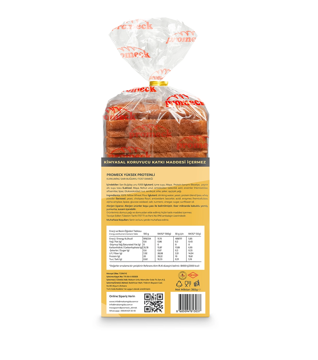 Binlerce yıldır doğanın değerli bileşenlerinden biri olarak bilinen zerdeçal, içerdiği kurkumin sayesinde beslenmede önemli bir yere sahiptir. Promeck Kurkuminli Sarı Buğdaylı Yüksek Proteinli Tost Ekmeği, bu doğal gücü sarı buğdayın besleyici yapısıyla bir araya getirerek yeni nesil bir ekmek deneyimi sunar.